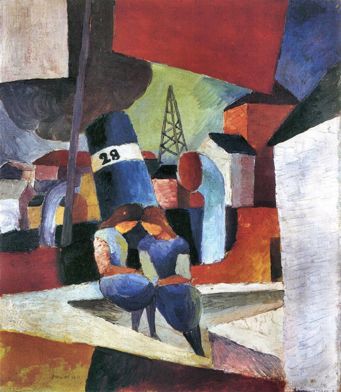 Picture with Children on The Wall – Dusiburger Port by August Macke