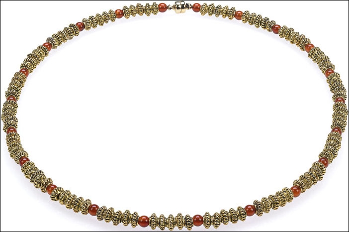 Egyptian necklace with corrogated roundels & Carnelian beads