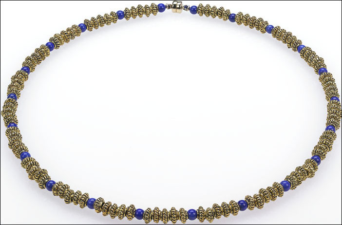 Egyptian necklace with corrogated rondels & Lapis