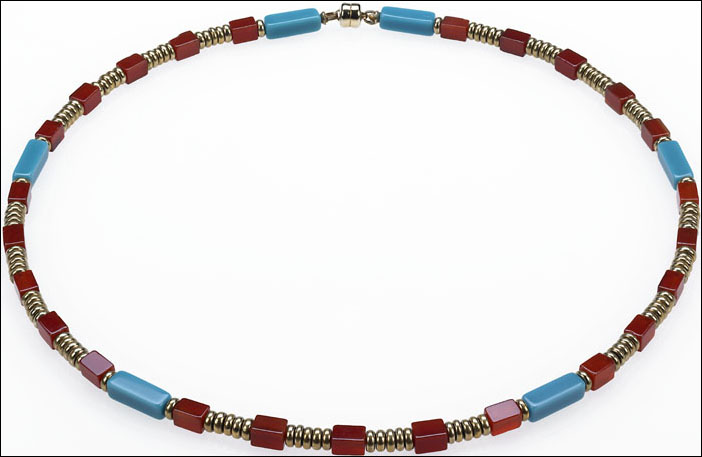 Egyptian necklace with Cylindrical rec. Turquoise & Carnelian beads