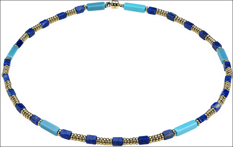 Egyptian necklace with Cylindrical rec. Turquoise & Lapis beads