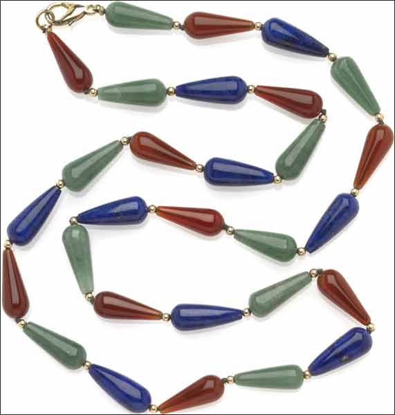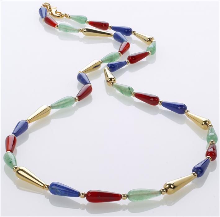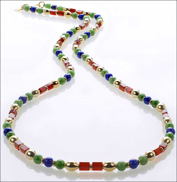 30″ Egyptian Necklace, Lapis, Carnelian and Aventurine