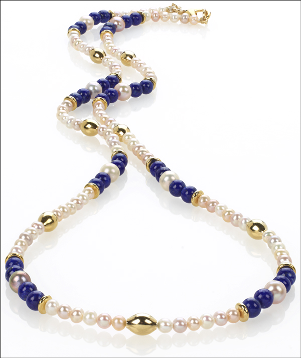 Egyptian genuine Lapis and Freshwater Pearl necklace