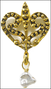 Victorian Heart pin/tie-tack with drop pearl