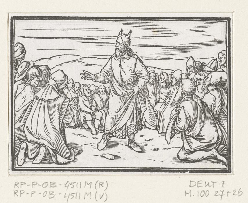 Moses speaking to the people of Israel. 1538