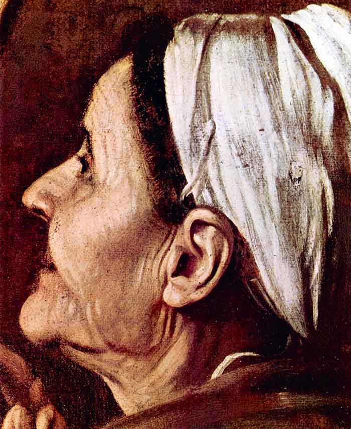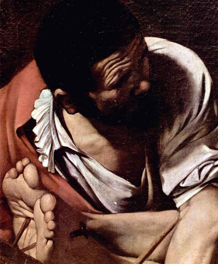 Madonna of The Pilgrims Detail by Caravaggio