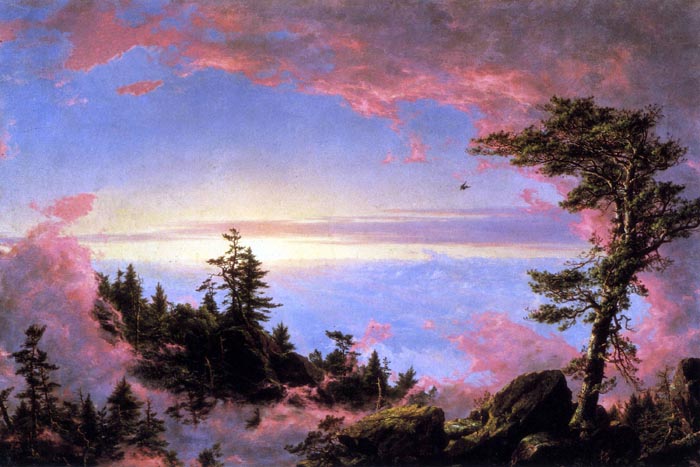 Frederic Edwin Church was an American landscape painter born in Hartford, Connecticut. He was a central figure in the Hudson River School of American landscape painters, perhaps best known for painting large panoramic landscapes, often depicting mountains, waterfalls, and sunsets, but also sometimes depicting dramatic natural phenomena that he saw during his travels to the Arctic and Central and South America. Church’s paintings emphasis on light and a romantic respect for natural detail. In his later years, Church painted classical Mediterranean and Middle Eastern scenes and cityscapes.