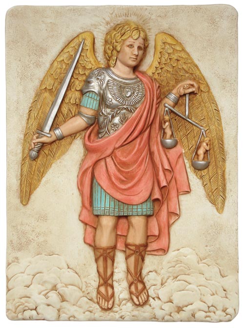 Gabriel means “God is my strength. Gabriel is the Angel of annunciation, resurrection, mercy, vengeance, death and revelation. Gabriel is the ruler of heaven and ruler of the Cherubim. Gabriel is said to sit on the left hand side of God. Mohammed claimed it was Gabriel who dictated to him the Koran. In Jewish legend it was Gabriel who dealt death and destruction to Sodom and Gommorah. Gabriel appeared to Daniel to tell him of the coming of a Messiah: a message which later he repeats to Mary in the annunciation. Earlier he had announced to Zacharias the coming of John the Baptist. Gabriel’s symbols are the lily and the trumpet. Gabriel is often represented blowing his trumpet to announce the beginning of the purification of the world and the second coming of Christ.