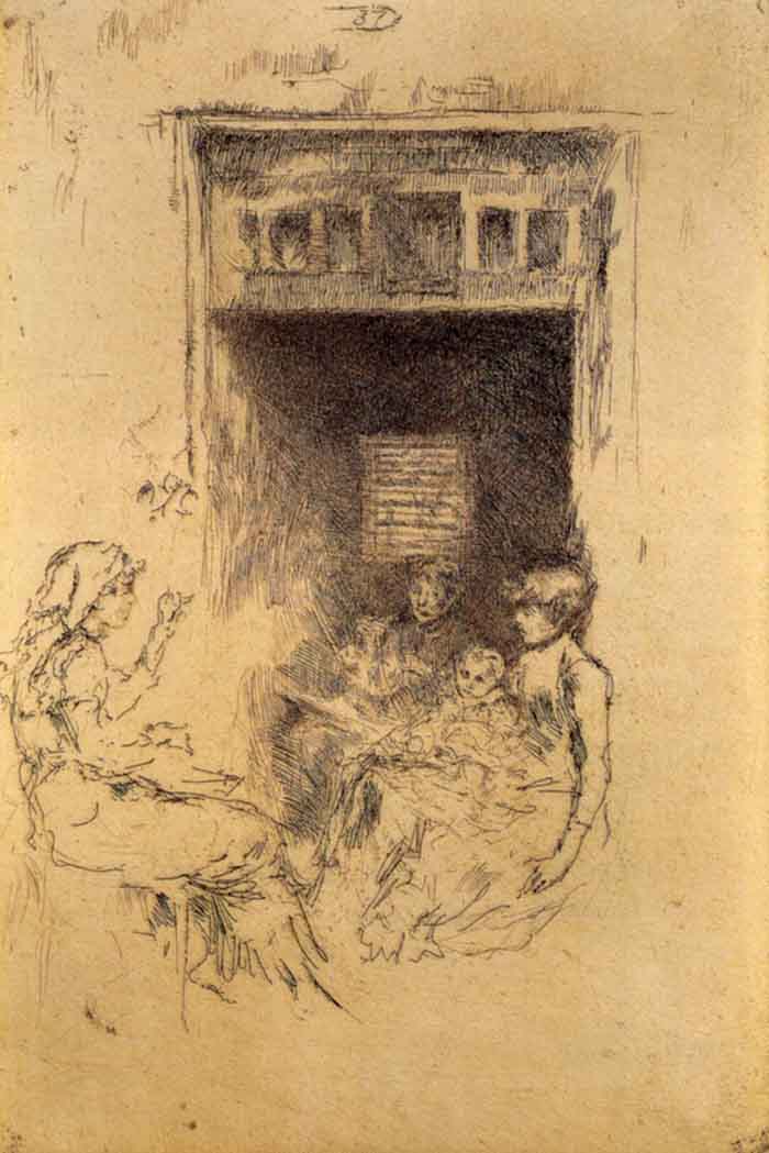James Abbott McNeill Whistler was an American-born, British-based artist active during the American Gilded Age. Averse to sentimentality and moral allusion in painting, he was a leading proponent of the credo, "art for art’s sake". His famous signature for his paintings was in the shape of a stylized butterfly possessing a long stinger for a tail. The symbol was apt, for it combined both aspects of his personality—his art was characterized by a subtle delicacy, while his public persona was combative. Finding a parallel between painting and music, Whistler entitled many of his paintings "arrangements", "harmonies", and "nocturnes", emphasizing the primacy of tonal harmony. His most famous painting is Whistler’s Mother (1871), the revered and oft parodied portrait of motherhood. Whistler influenced the art world and the broader culture of his time with his artistic theories and his friendships with leading artists and writers.