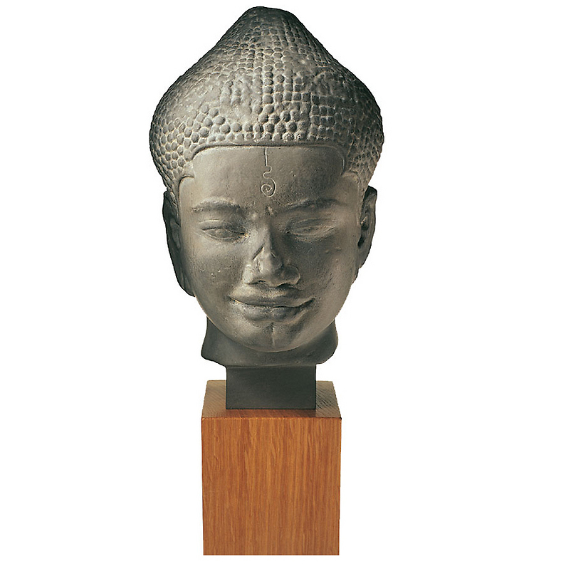 Reproduction in resin with patina: Size: H. 38 L. 17 P 16 cm – Origin: Cambodge, Aymonier mission – Material of the original: Sandstone – Epoch: End of 12th century, beginning of 13th century , angkorian period, Bayon style – Museum: Paris – Musee des Arts asiatiques-Guimet – Material: Resin